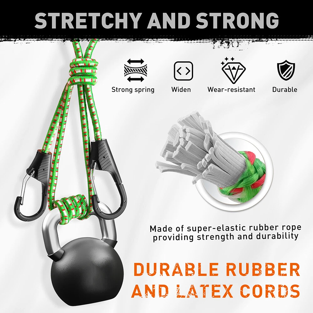 【Reliability】 High temperature, UV and weather resistant. Suitable for outdoor activities in all climatic conditions, the reinforced latex core bungee cord remains flexible and tough no matter what the season, and will not degrade or break.