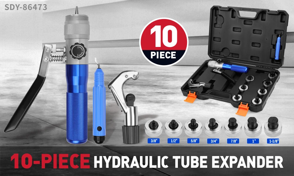 All-in-One Versatile Kit: Our hvac tube expander kit includes 1 hydraulic tube expander, 1 deburring tool, 1 pipe cutter, 7 stainless steel expansion heads and 1 storage case. Necessary tools are all ready to handle different types of pipe connections.