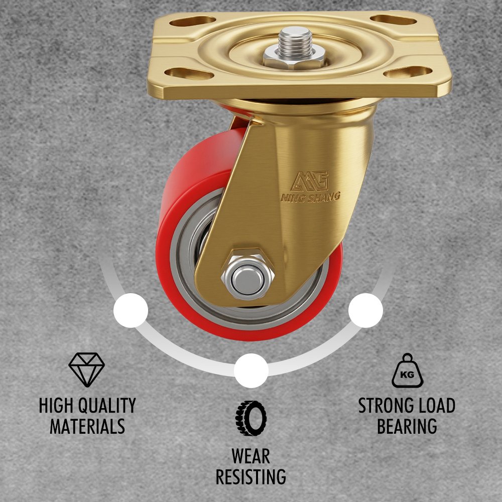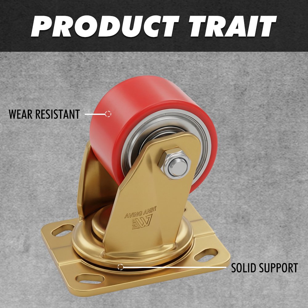 The caster is equipped with a high-quality polyurethane (PU) wheel, offering excellent wear resistance, shock absorption, and smooth rolling performance. The solid construction reduces noise and protects floor surfaces, making it ideal for both indoor and outdoor environments.