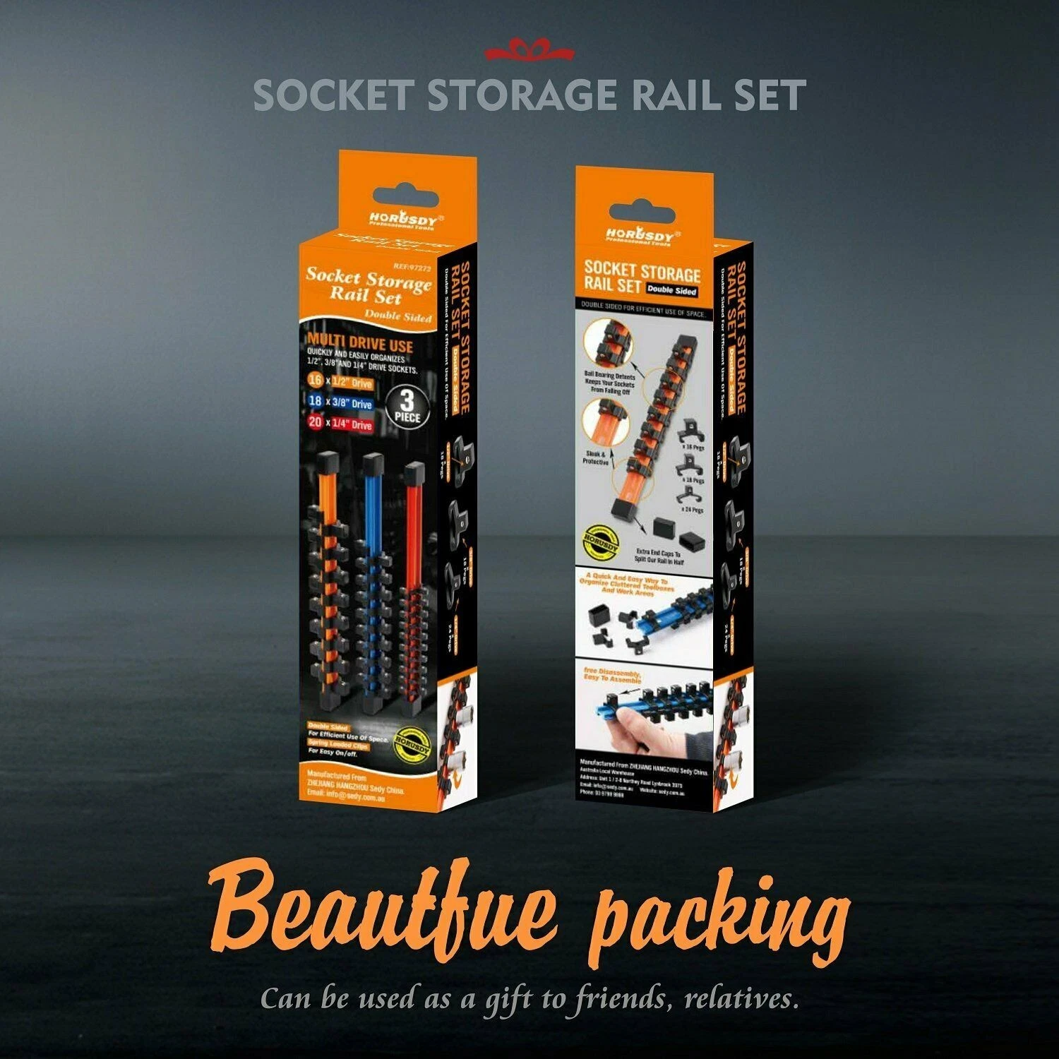 1pc Blue 3/8″ Drive With 18 Socket Clips Per Rail