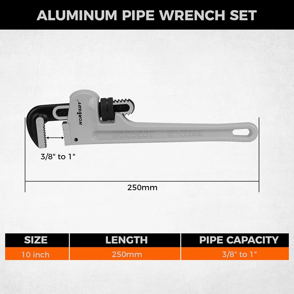 ULTRA-LIGHT PERFORMANCE : Our aluminum pipe wrench set is nearly 40% lighter than standard steel pipe wrenches yet capable of providing outstanding strength and durability. This reduces arm fatigue, causes less strain, and boosts productivity for plumbers, contractors, and DIY homeowners tackling plumbing jobs.