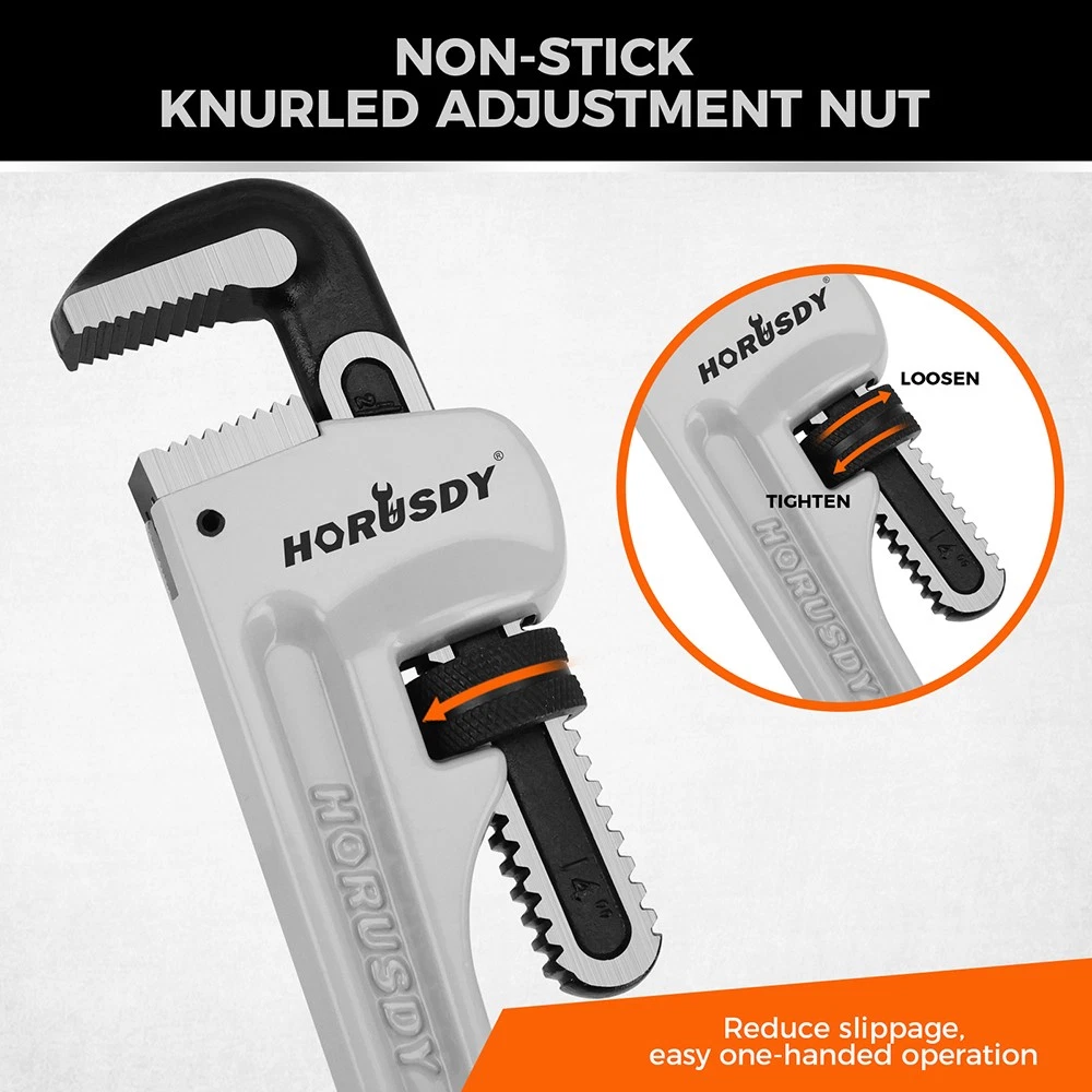 BUILT FOR TOUGH JOBS : This lightweight yet ultra-strong aluminum pipe wrench is a professional-grade HVAC tool, capable of tackling plumbing repairs, gas line work, or outdoor pipe systems. Perfect for plumbers, contractors, and homeowners used for demanding jobs that require trusted performance
