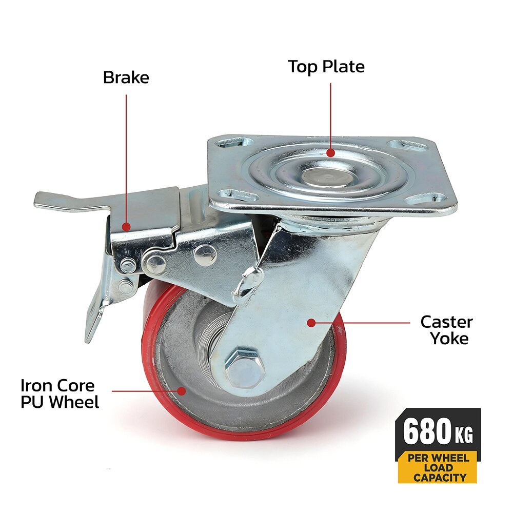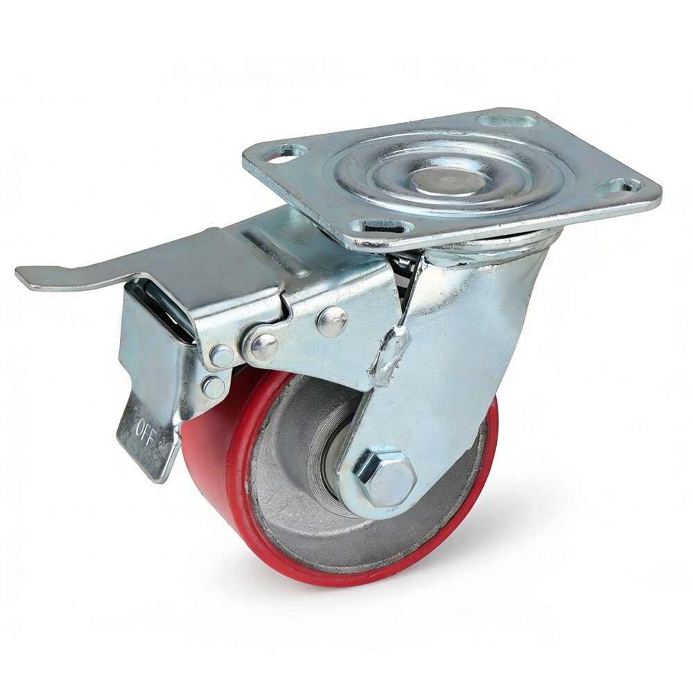 High-quality 4-inch polyester swivel caster, available with or without an integrated brake. Designed for industrial and logistics applications, it delivers smooth mobility, strong load-bearing capacity, and reliable performance. Ideal for carts, shelving units, trolleys, and automated transport systems.