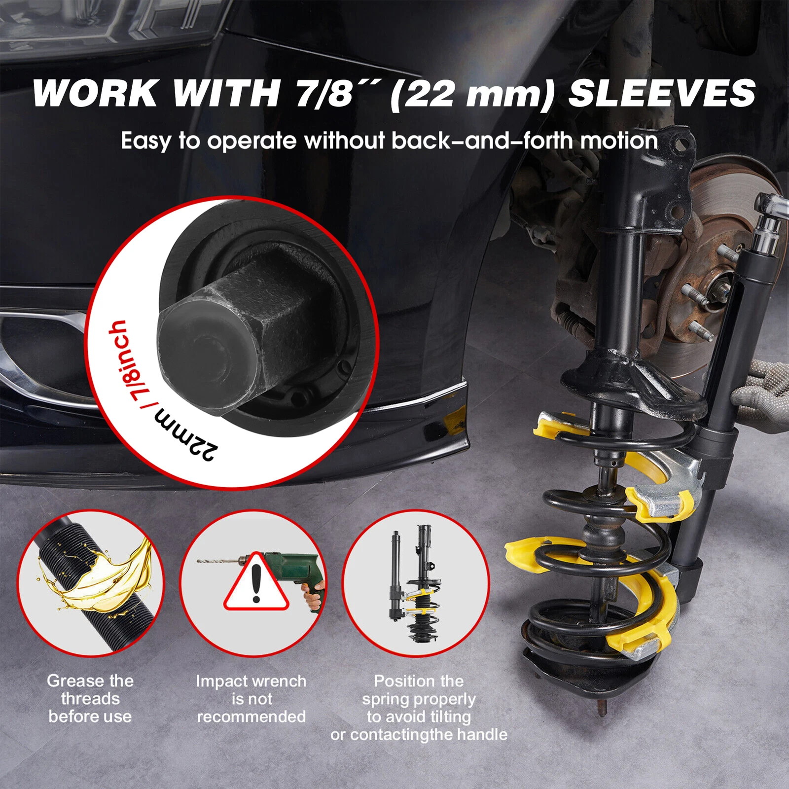 Versatile Use: Ideal for shock absorber spring removal (MacPherson struts, conical springs) on cars, SUVs, motorcycles, and more.