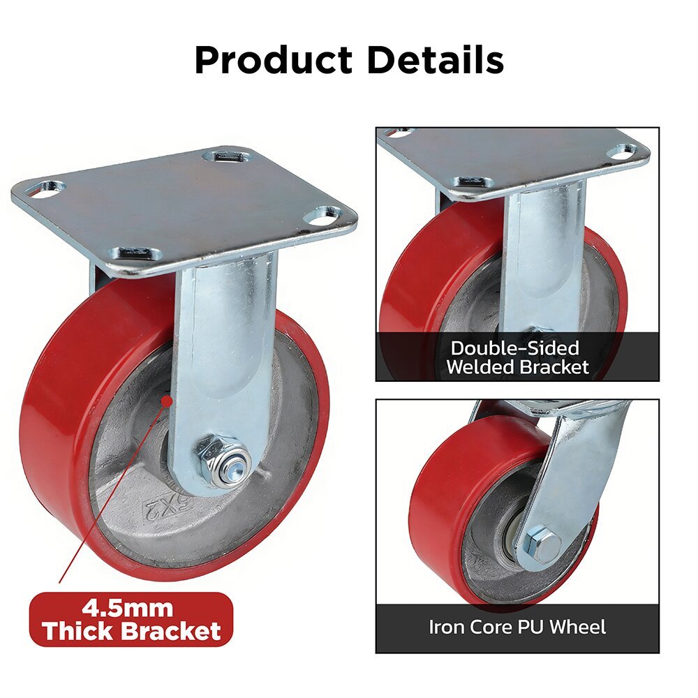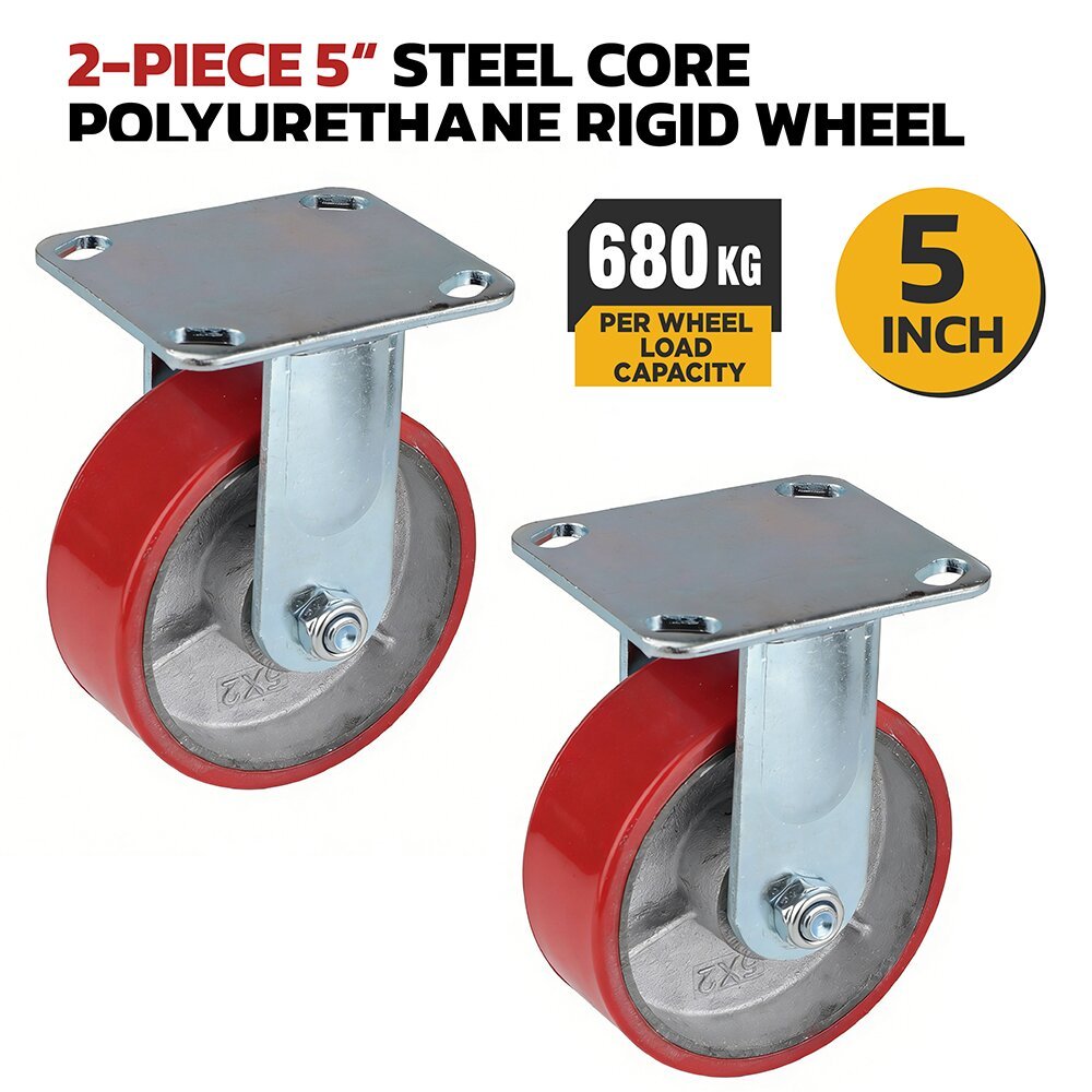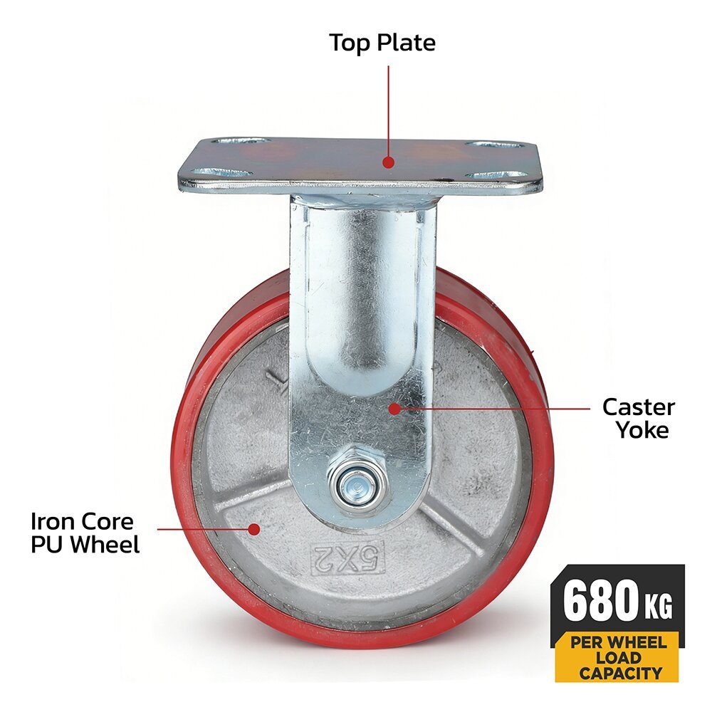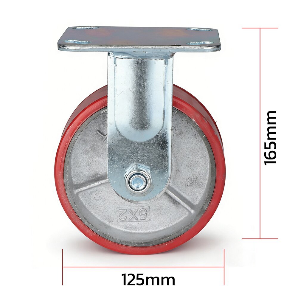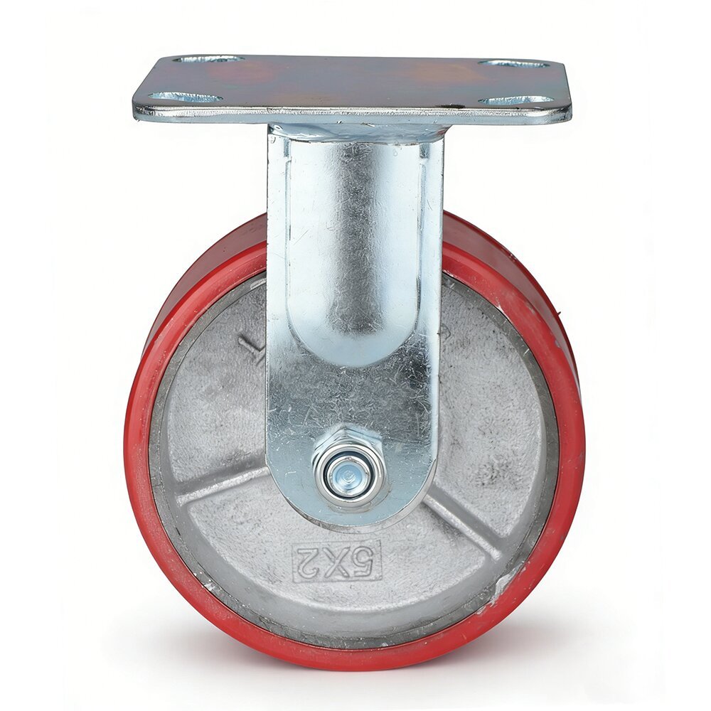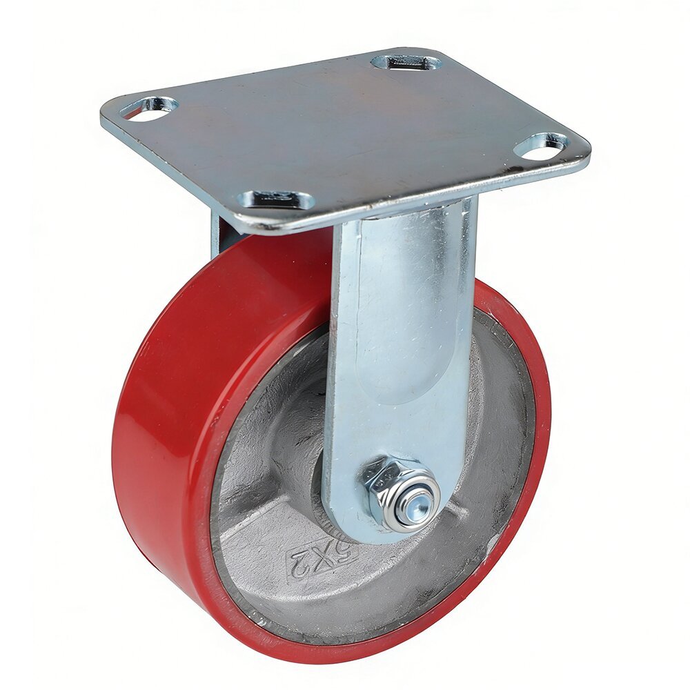 Durable 5-inch polyester rigid caster, designed for industrial and logistics applications. Made with high-quality polyester, it provides strong load-bearing capacity and stable, straight-line movement. Ideal for carts, shelving units, and automated transport systems requiring precise directional control.