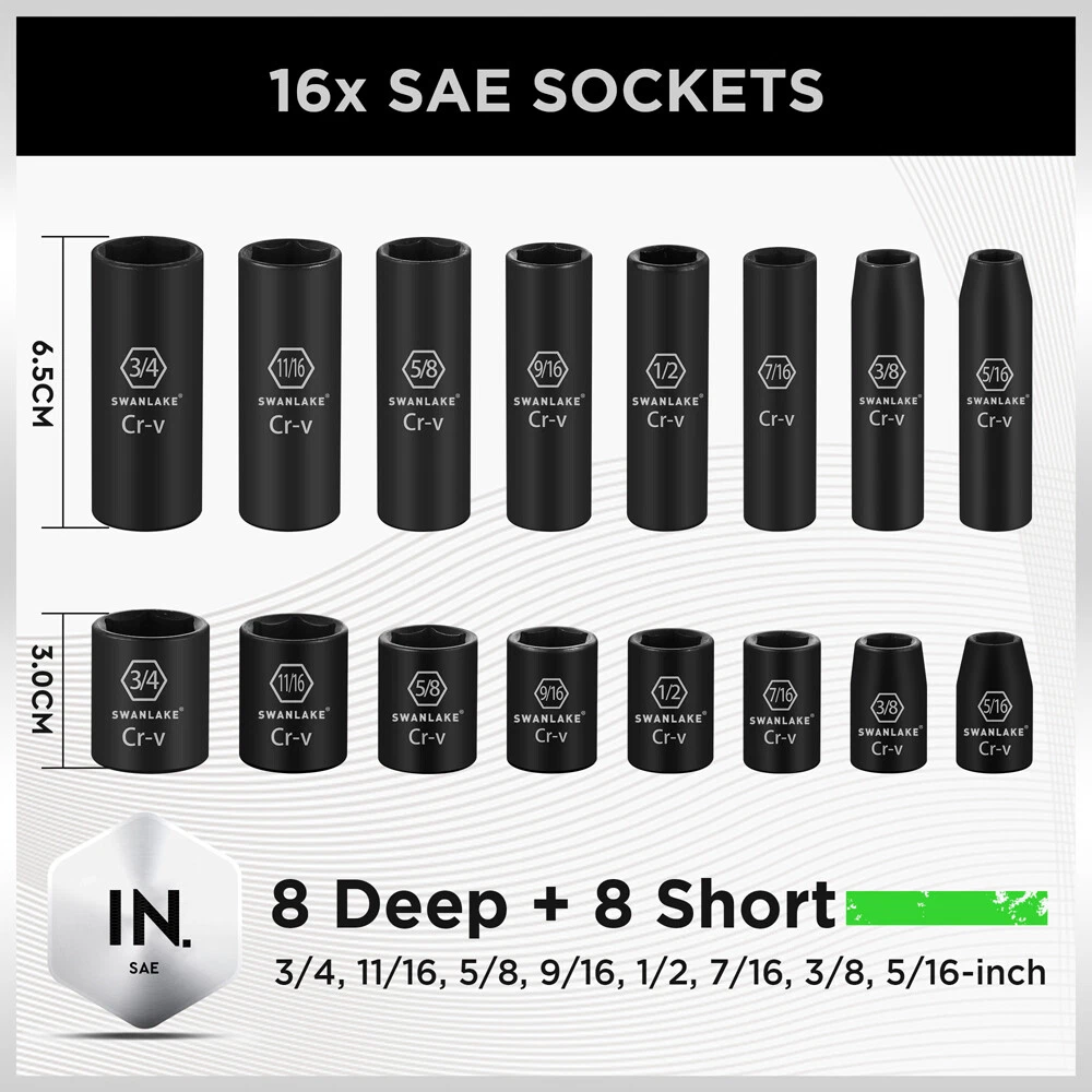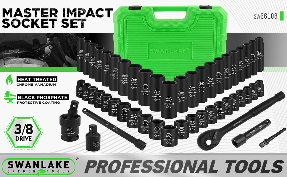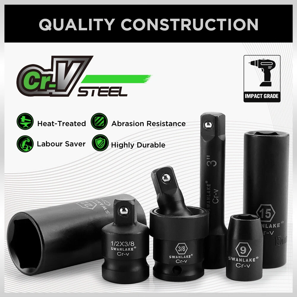 High quality forging, forged from heat treated chrome vanadium steel, each socket surface treated with corrosion resistant black phosphoric acid to prevent oil and rust.