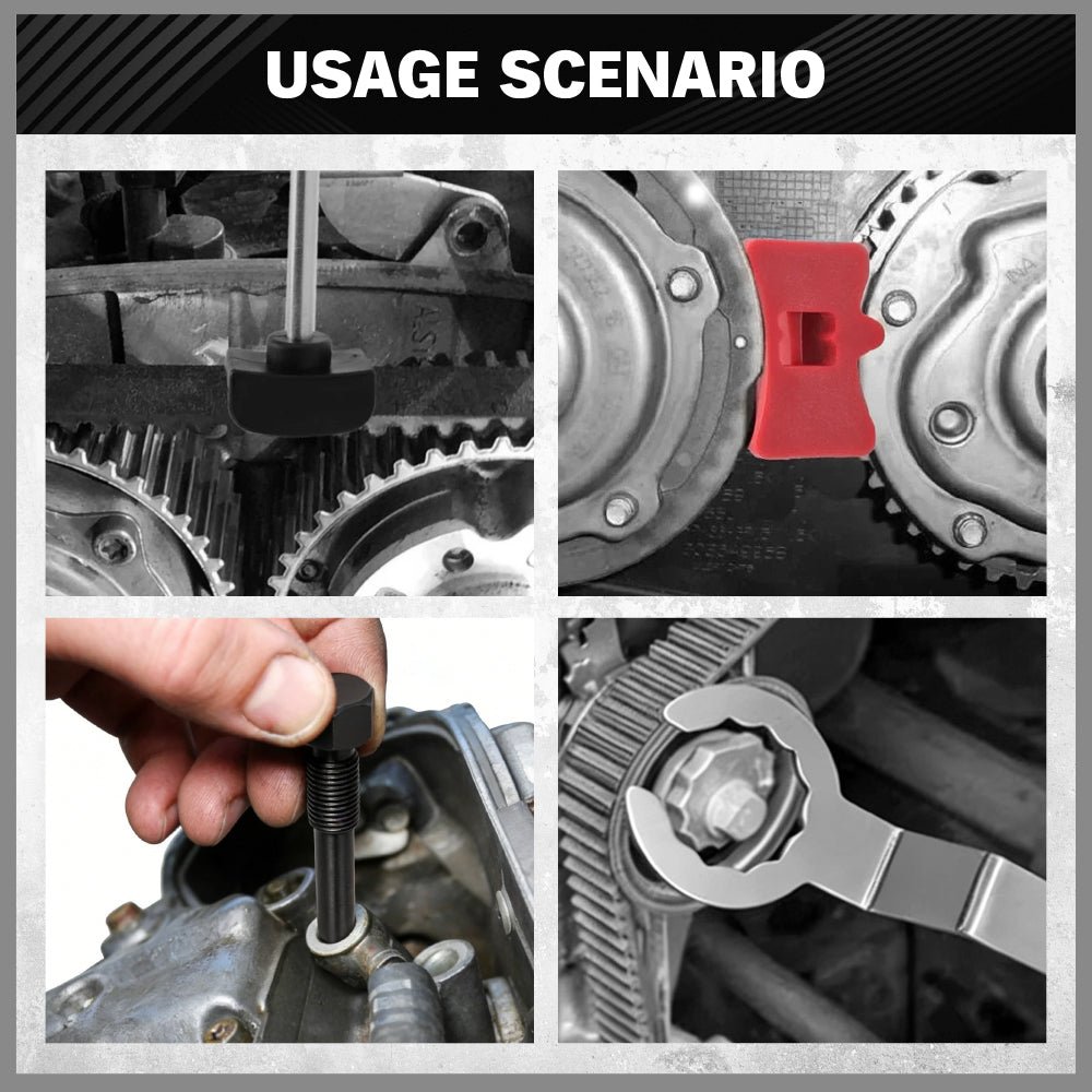 Includes core camshaft locking and engine positioning tools required for timing maintenance, making it a cost-effective solution for standard repair jobs.