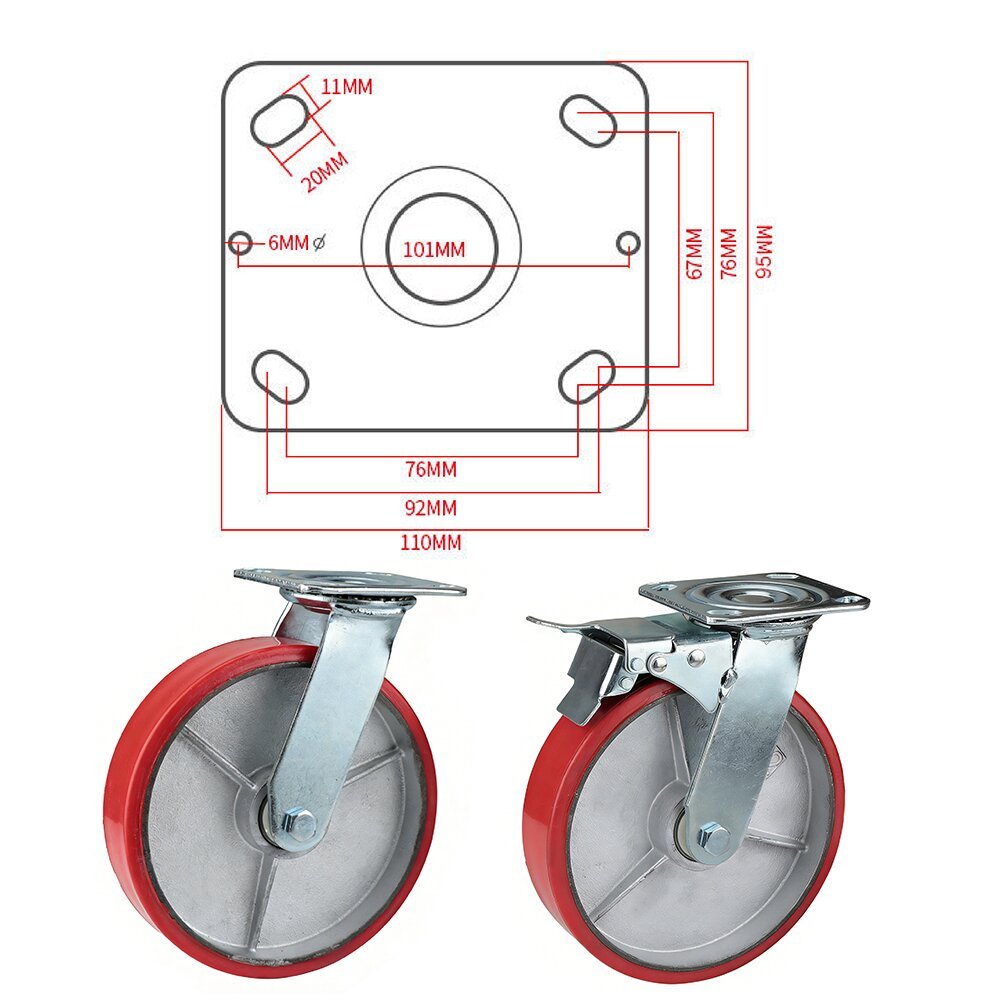 • 8-Inch Swivel Caster – With Brake