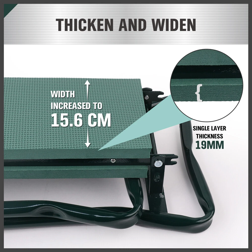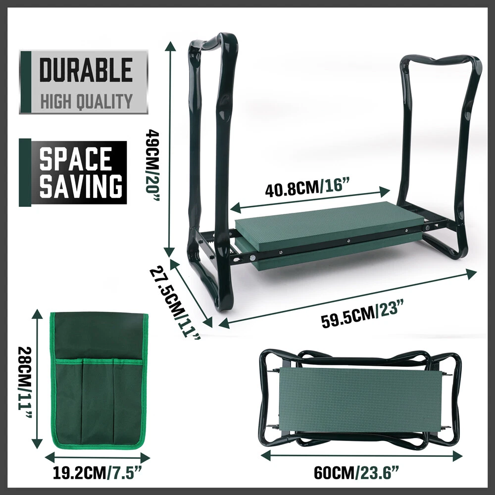 - High Quality – Our garden kneeler is made of a strong metallic frame and EVA foam, which can protect your knees and provide support for your arms, making it easy to get up and down.